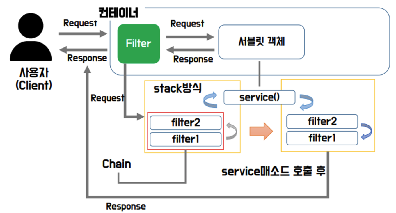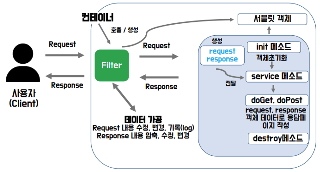 Servlet (인터페이스) -> HttpServlet(추상클래스)Filter 계층