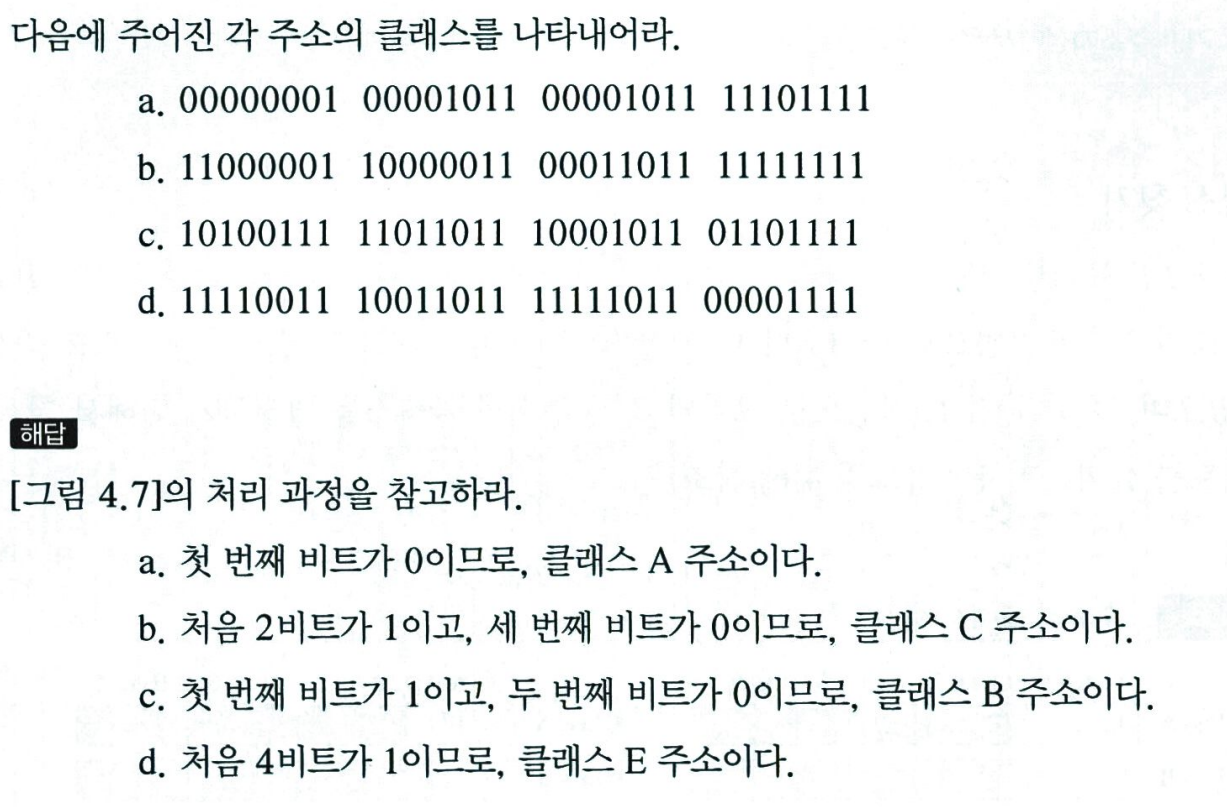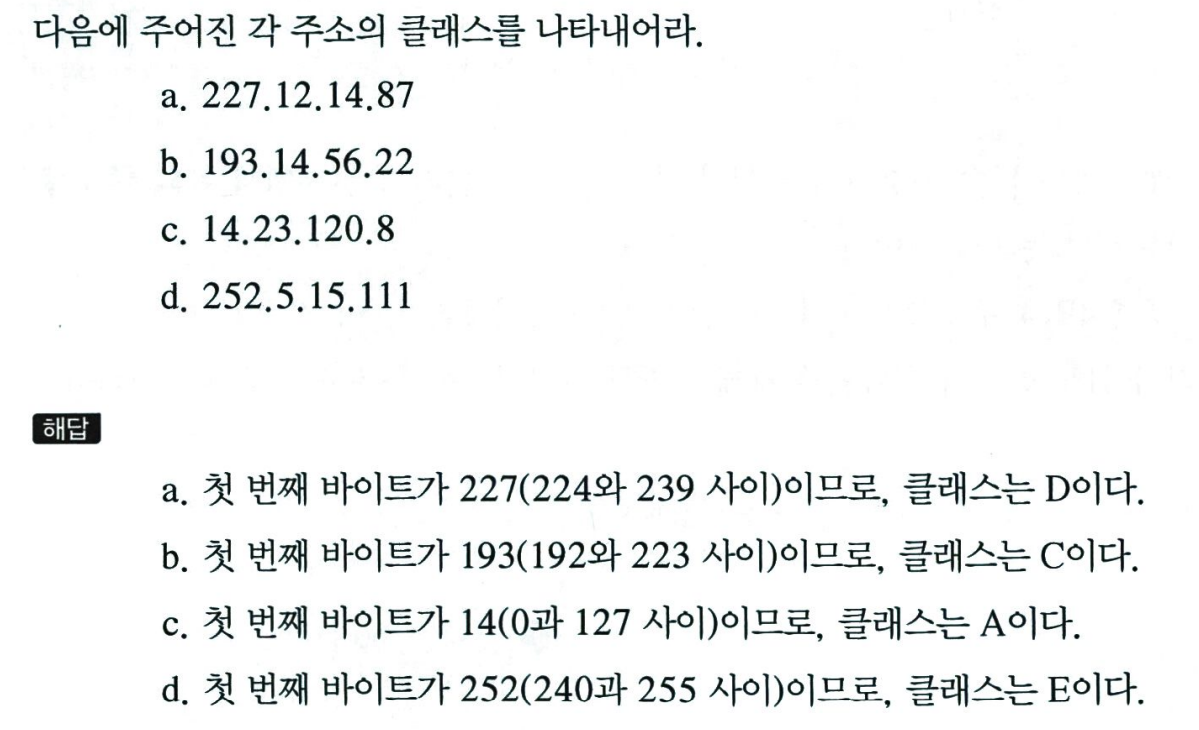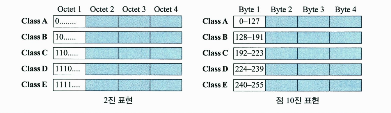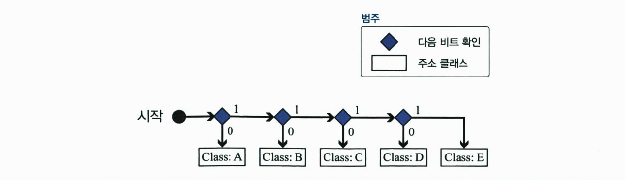 주소가 2진 표기법, 또는 점 10진 표기법으로 주어졌을 때, 주소의 클래스를 알 수 있다. 다음 그림을 참조하라