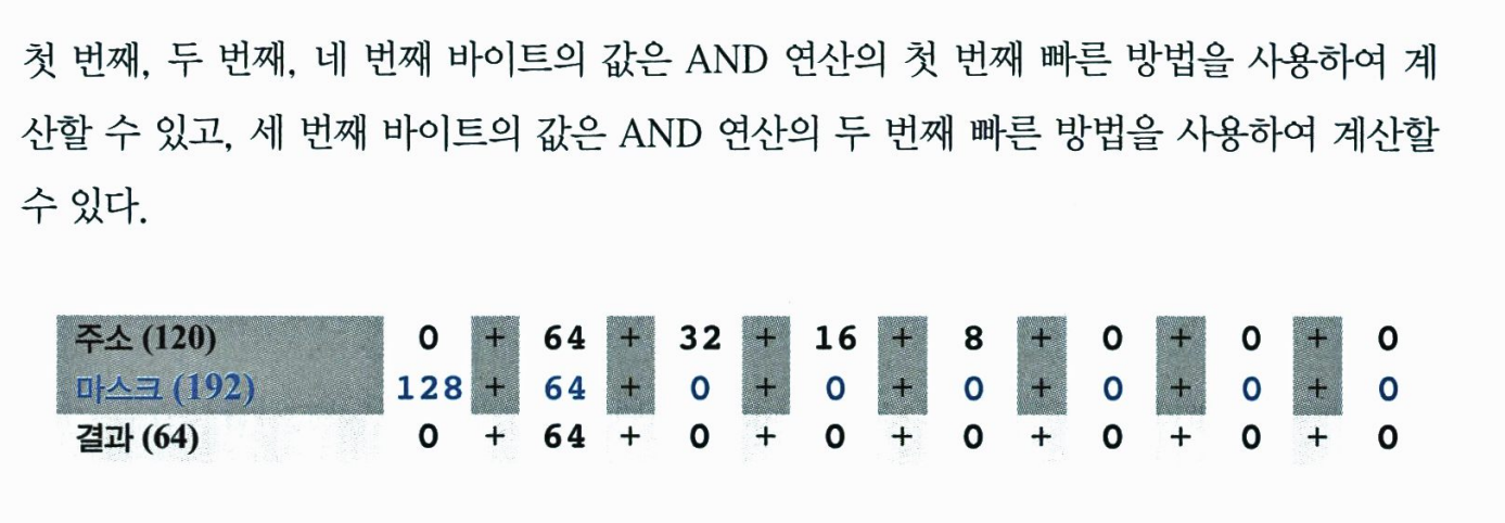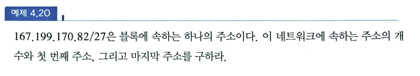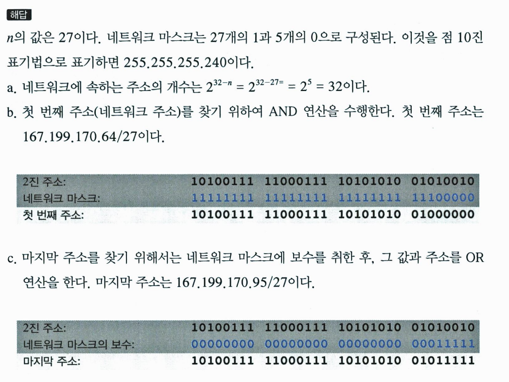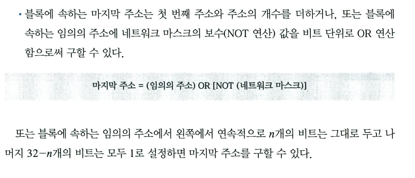 - 마지막 주소는 외쪽의 n비트를 유지하고 오른쪽의 (32-n) 비트를 1로 함으로써 구할 수 있다.