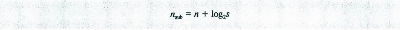 여기서 n은 netid의 길이이고 n(sub)는 각 subnetid의 길이이며, s는 2의 거듭제곰인 서브넷의 개수이다.