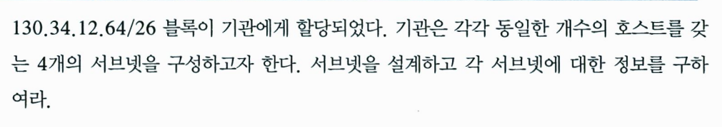 - 각 서브넷에 속하는 주소의 개수는 2의 거듭제곱이어야 한다.