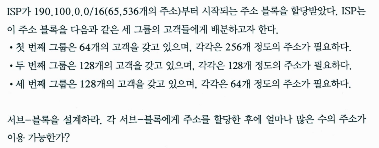 - 할당하고 하는 블록에 속하는 주소들은 연속적인 숫자여야 하며 또한 다른 블록에 할당되지 않은 상태로 있어야 한다. 블록의 시작 주소를 선택하는 데에는 한 가지 제약조건이 있다. 시작 주소는 블록에 속하는 주소의 개수로 나누어질 수 있어야한다.