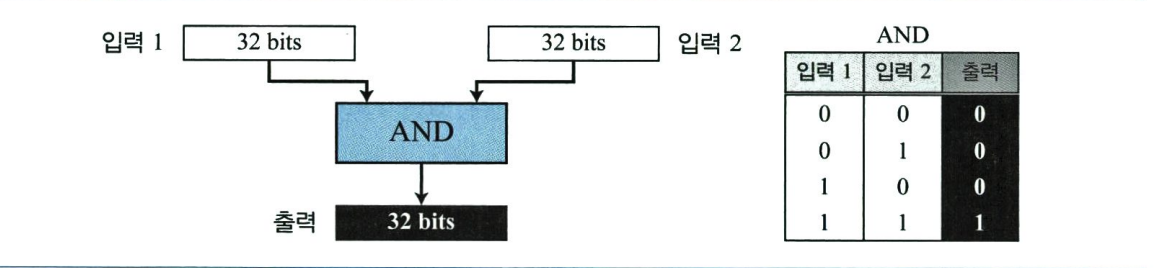 비트 단위 AND 연산은 이항 연산(binary operation)으로 두 개의 입력을 취한다. AND 연산은 두 개의 입력에서 해당하는 두 비트를 서로 비교하여 둘 중에서 작은 비트 값을 취한다. 두 비트의 값이 같은 경우 둘 중 하나의 값을 취한다. 다음 그림은 AND 연산을 보여준다.