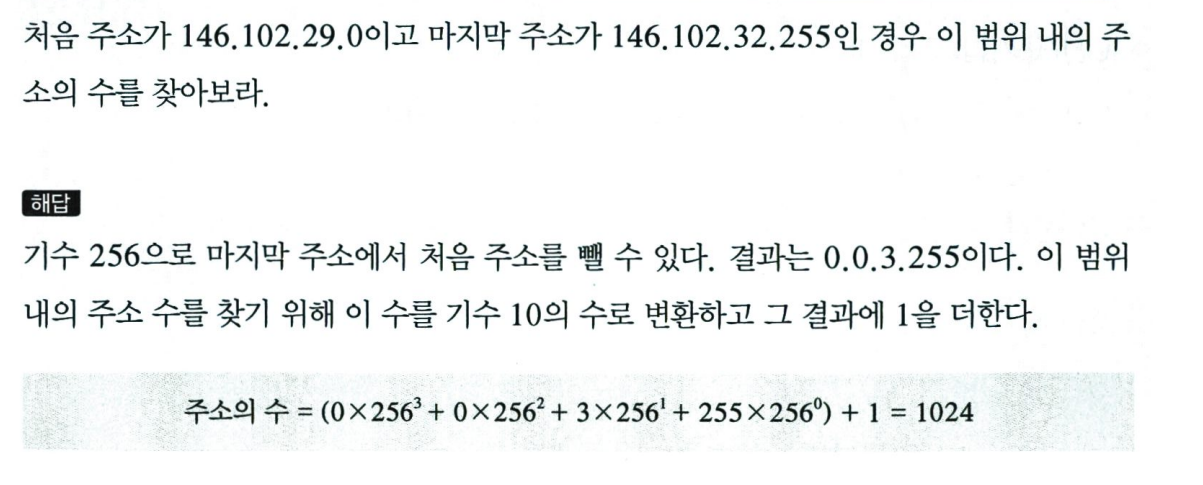 경우에 따라 한 개의 주소 대신에 주소의 범위를 다루는 것이 필요할 때가 있다. 처음 주소와 마지막 주소를 알면, 이 범위 내 주소의 개수를 찾는 것이 필요하다.