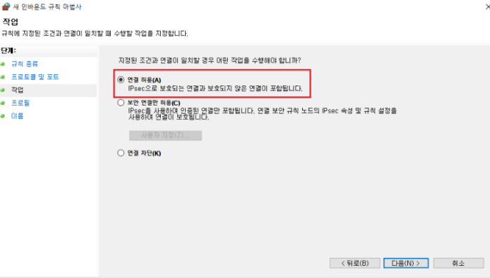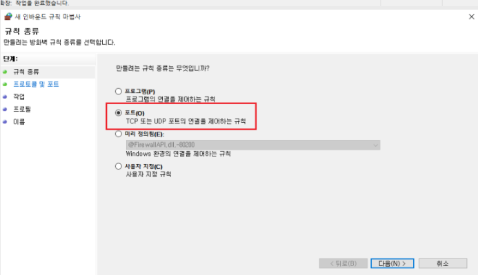 ✔해당 포트 방화벽 열어주기