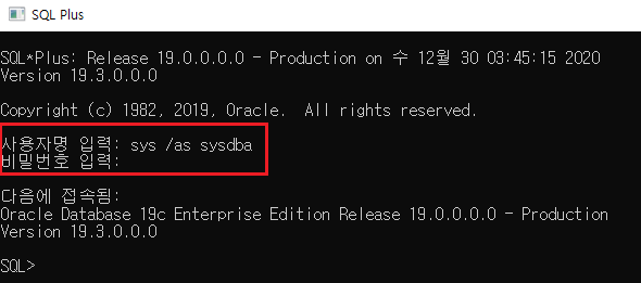 ✔사용자명 입력 : sys /as sysdba