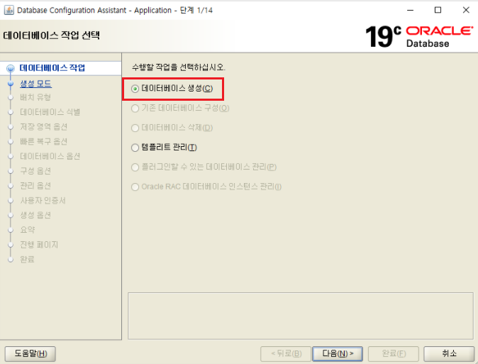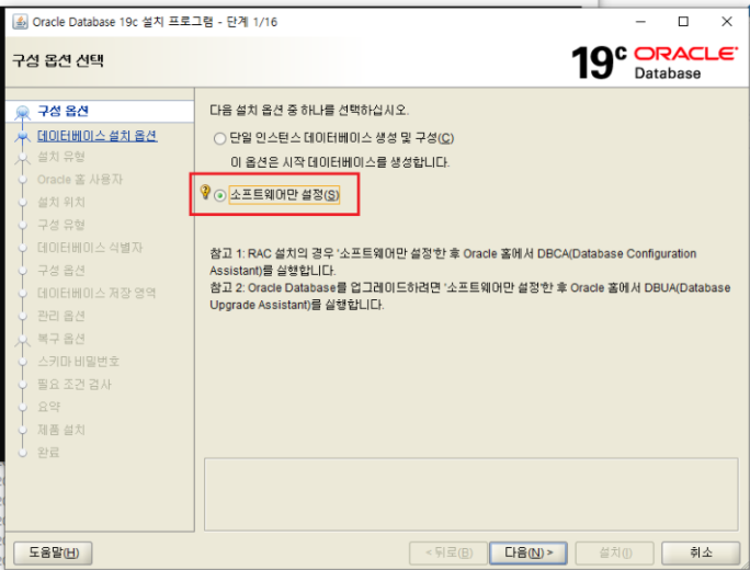 ✔소프트웨어만 설정후 뒤에 설정에서 DBCA로 db생성