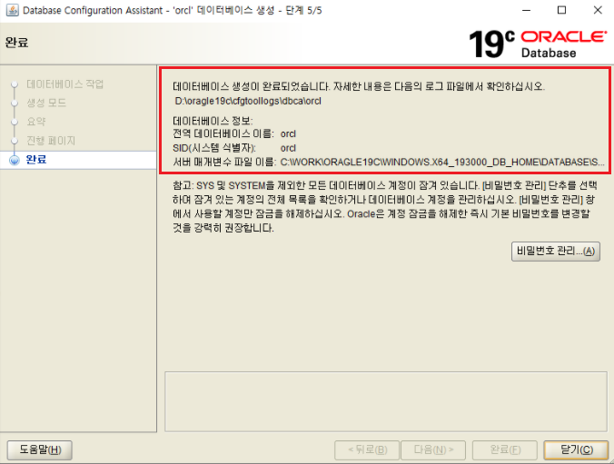 ✔오라클 설치 완료