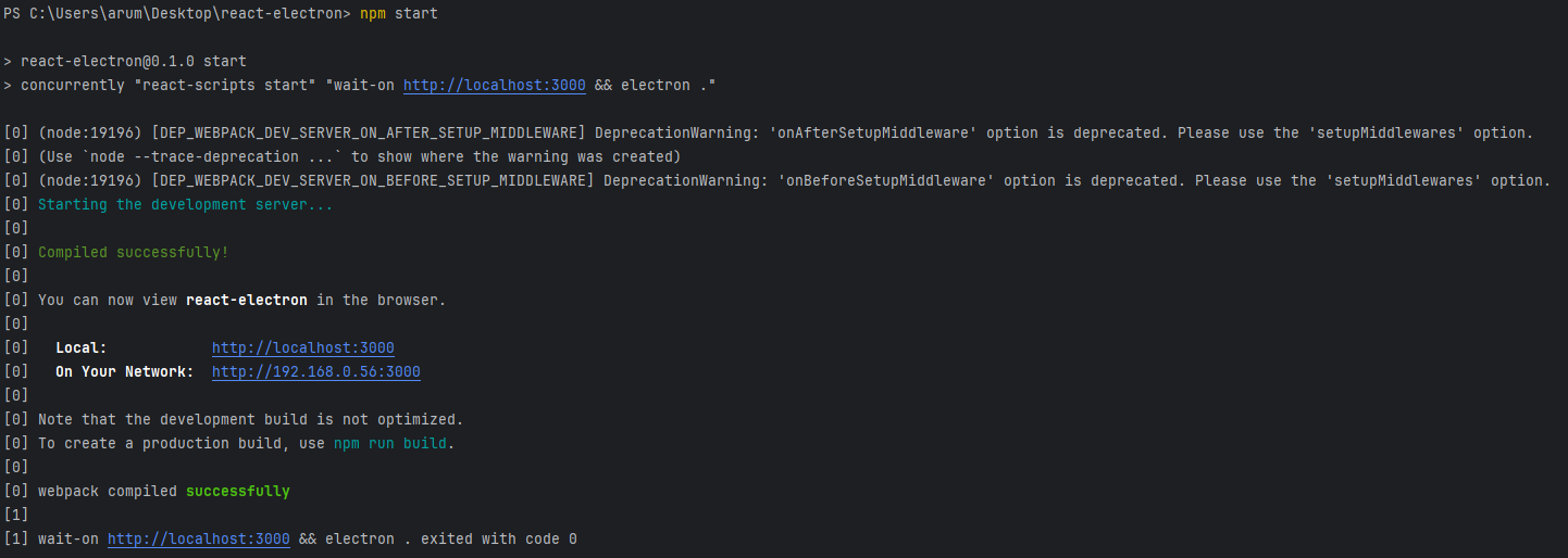 "start": "concurrently \"react-scripts start\" \"wait-on http://localhost:3000 && electron .\"",