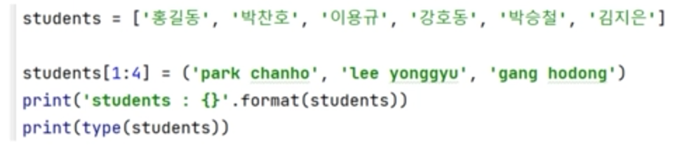 - slicing을 이용해서 아이템을 변경할 수 있다.
