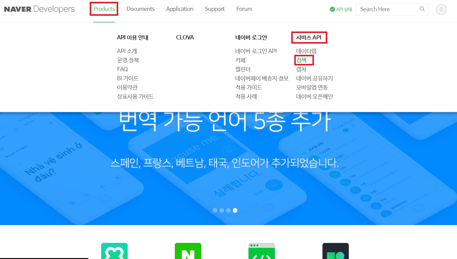🔗Naver Developers에서 API를 신청할 수 있다.