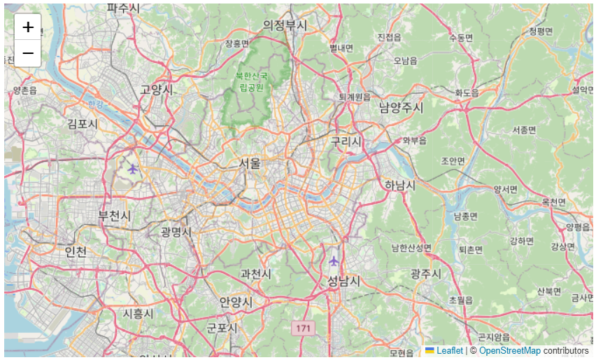 - "CartoDB" (positron and dark_matter)m = folium.Map( location=[37.544564958079896, 127.05582307754338], zoom_start=14, tiles="OpenStreetMap" ) m