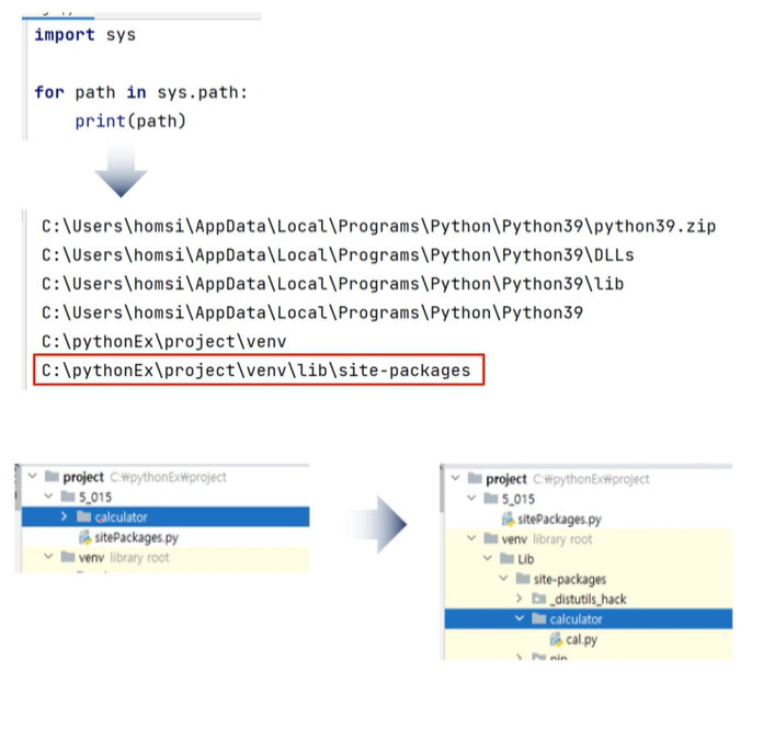 site-packages에 있는 모듈은 어디서나 사용할 수 있다.