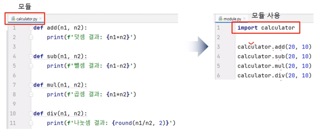 이미 만들어진 훌륭한 기능으로 사용자는 쉽게 사용할 수 있으며, 특정 기능을 가지고 있는 Python 파일을 말한다.