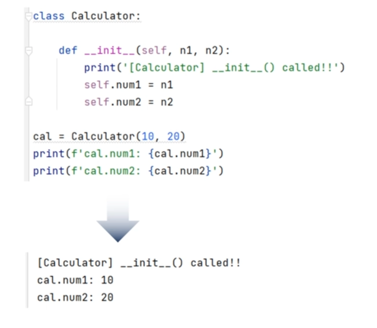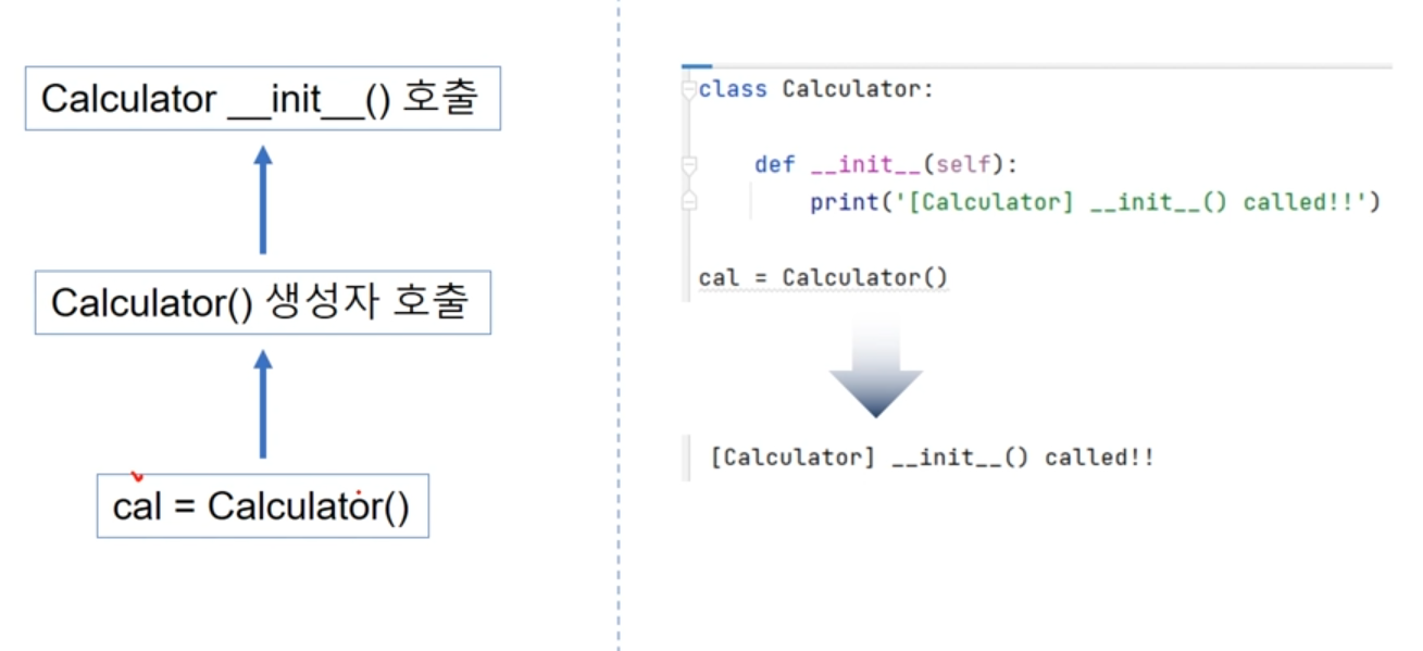 객체가 생성될 때 생성자를 호출하면 __init__()가 자동 호출된다.