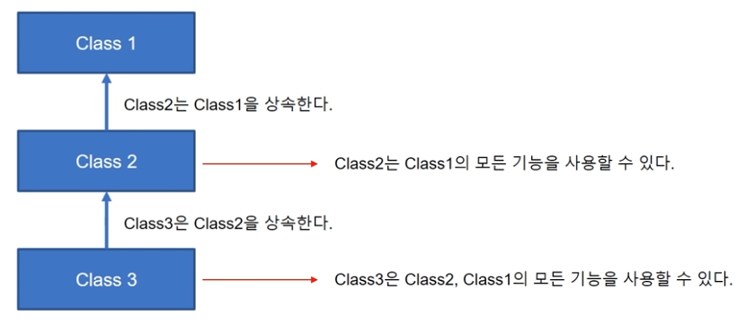 class 클래스명1(): ... 코드 생략 ... class 클래스명2(클래스명1): # 클래스명1을 상속한다. ... 코드 생략 ...