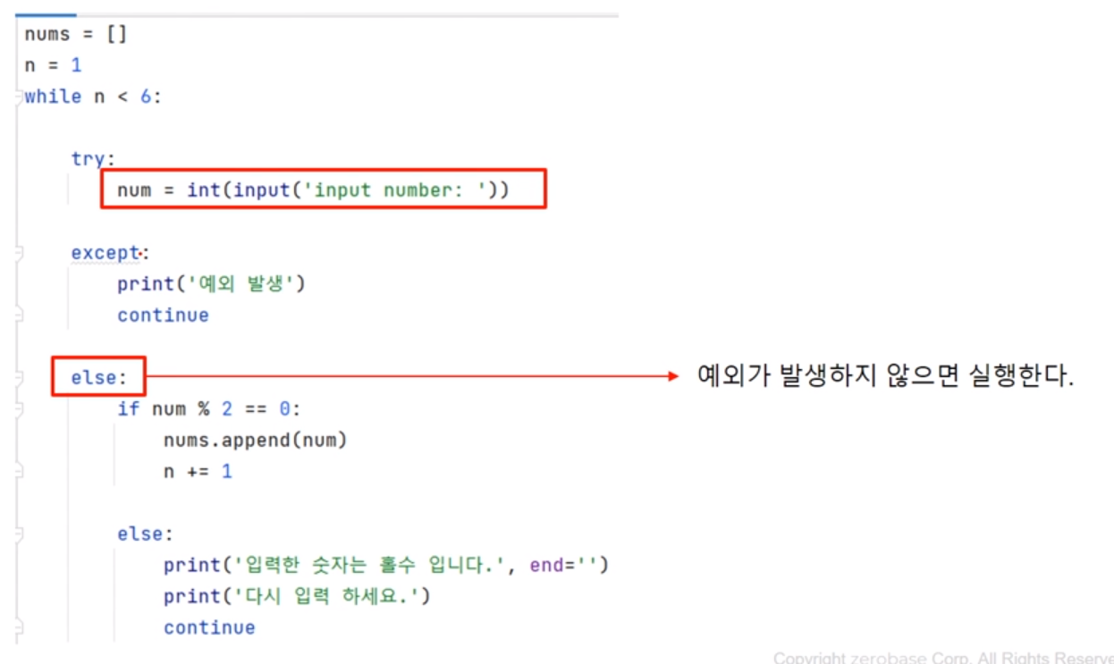 else는 예외가 발생하지 않은 경우 실행하는 구문이다.