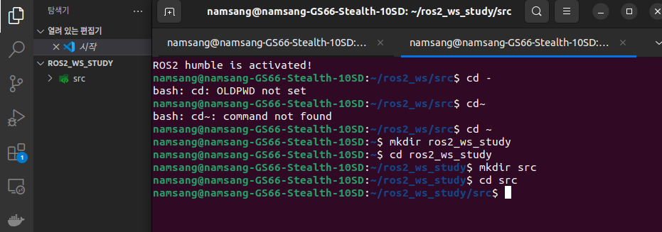 ros2 pkg create --build-type ament_cmake [package_name] --dependencies [의존 패키지]# c++로 패키지 생성