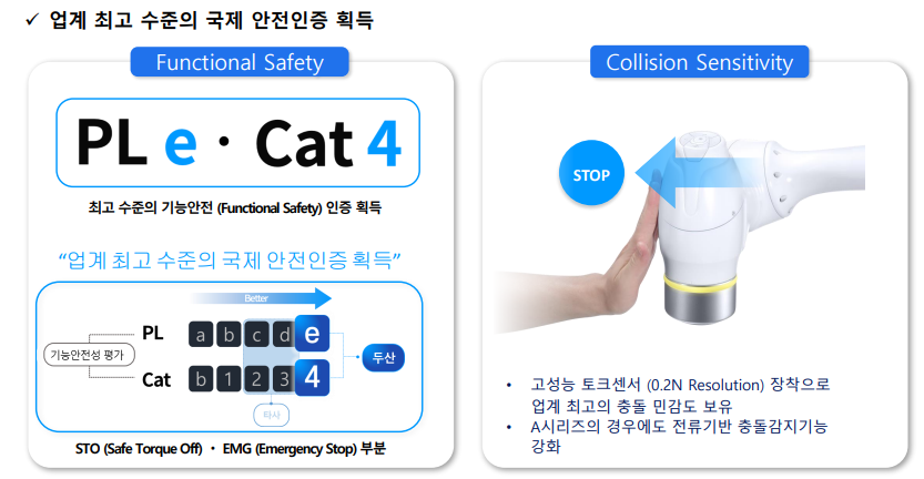 두산 협동로봇의 안전기능
