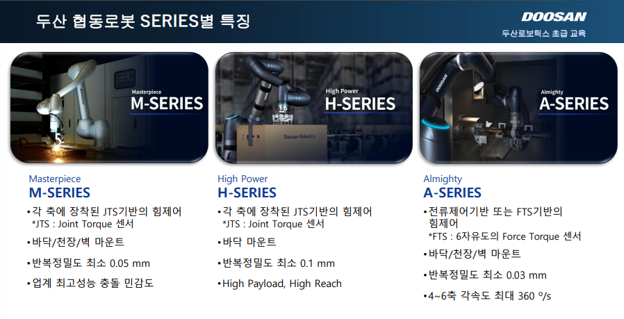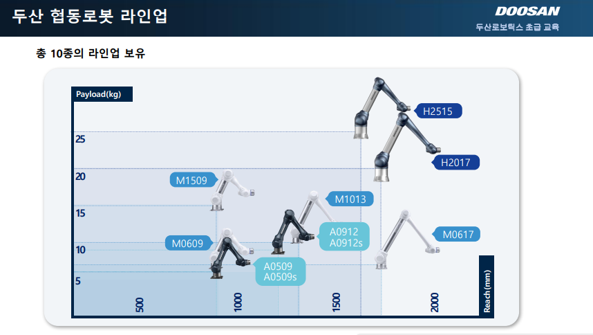 1. 두산협동 로봇이 구성을 이해하고 라인업의 차이 이해