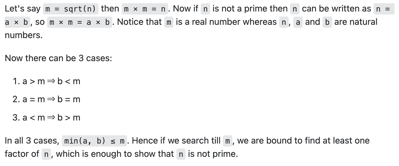 우선 무작정 검색해 보았다. Why do we use … sqrt() to check if prime … 뭐 이런 식으로. 다행히 sqrt()로 어떻게 소수를 찾는지 묻는 사람들이 많았는데,