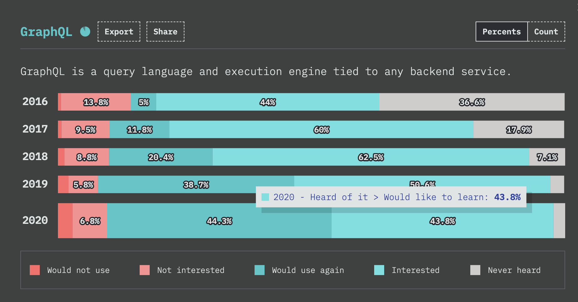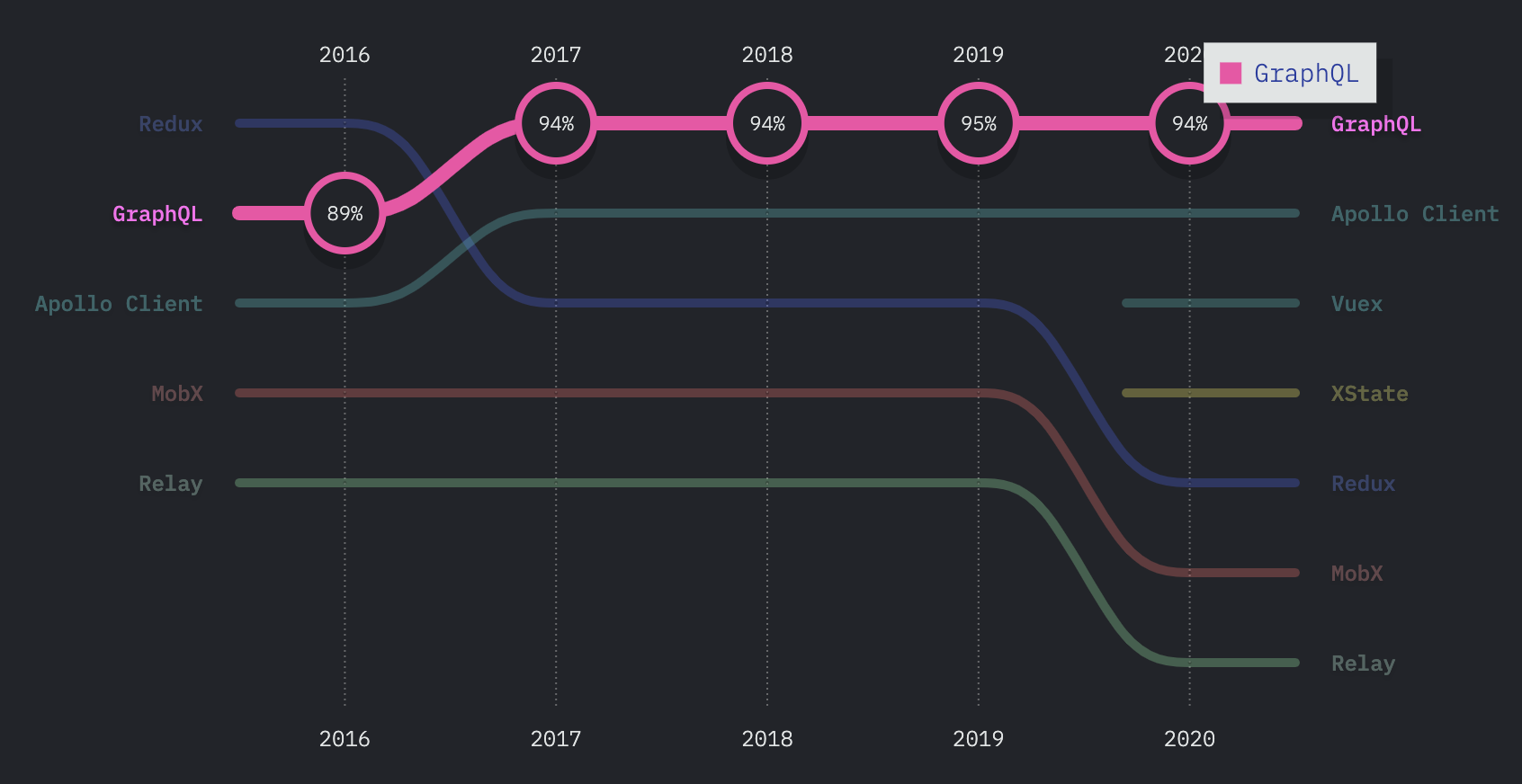 상승중인 GraphQL 인기 (출처: 2020.stateofjs)