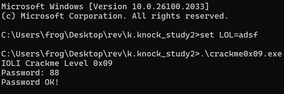 즉, 환경변수를 "LOL~"로 선언하고 비밀번호의 각 자리의 합을 16으로 설정하면 성공