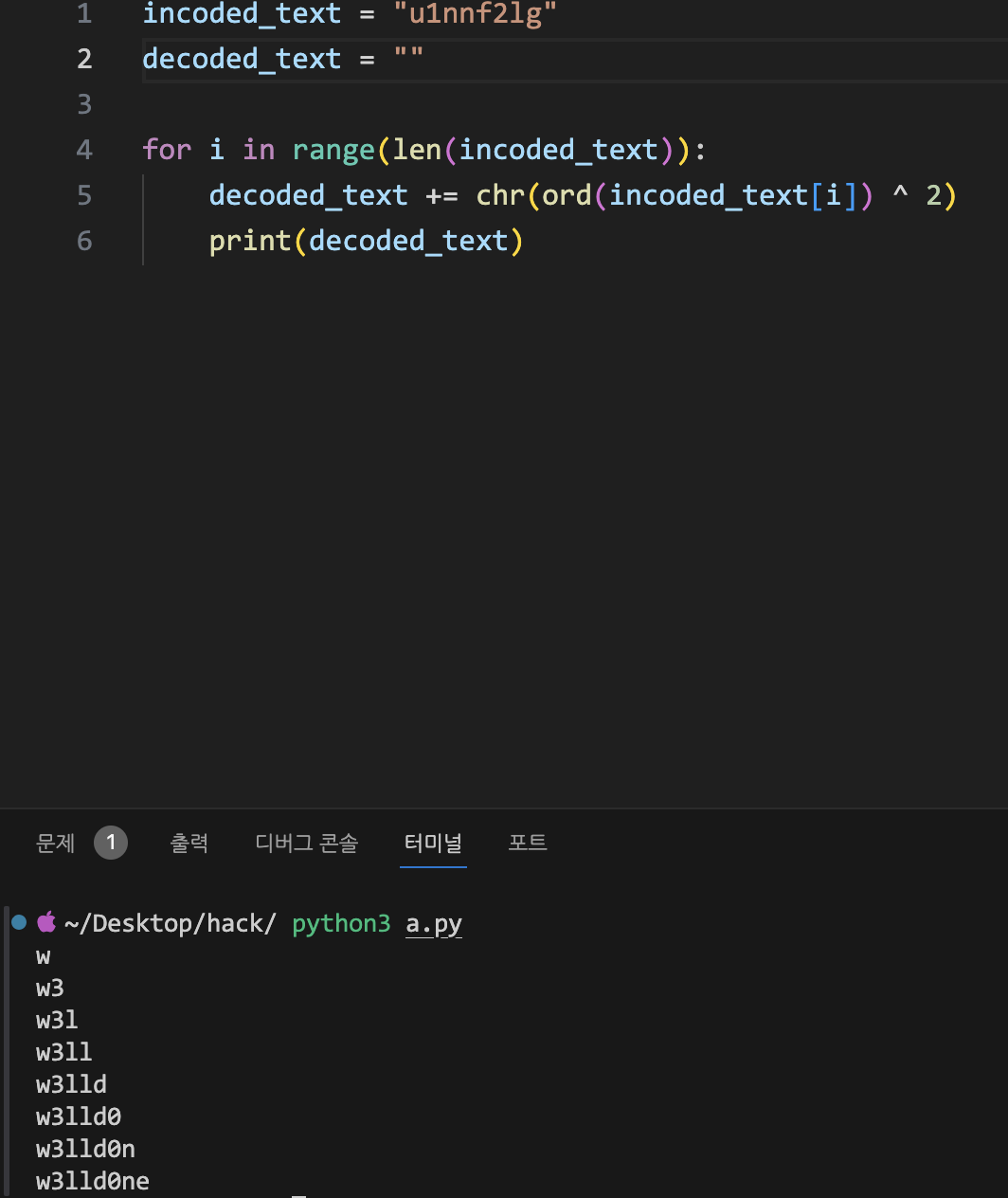 복호화된 문자열을 2로 xor 한 문자열이 올바른 password