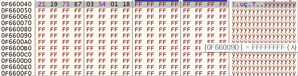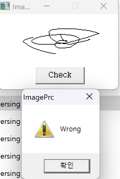 동적디버깅으로 확인해보니 0xff와 다른 값으로 이루어진 것이 90000개 있는 것을 확인 -> 해당 데이터와 사용자가 그린 그림을 비교한다는 것다고 판단