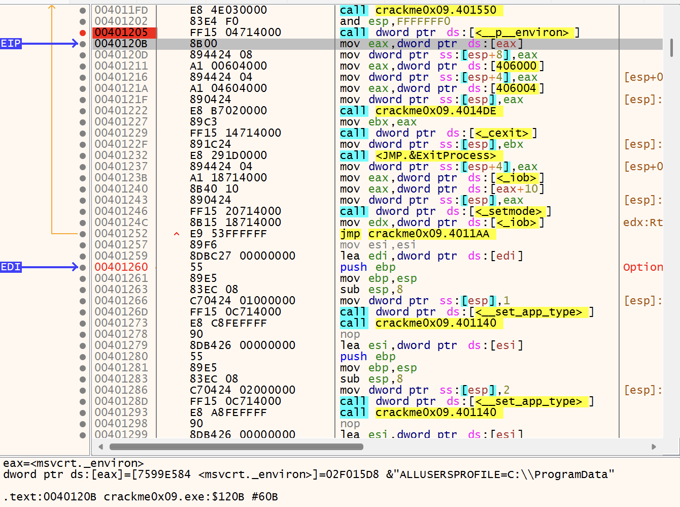 동적 디버깅을 이용해 _p__environ() 로 환경변수를 읽어옴을 알 수 있음