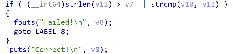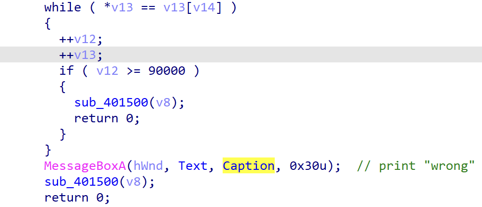v13의 값을 비교하는데 90000번 동일해야 함을 알 수 있음. 동일하지 않으면 wrong 출력