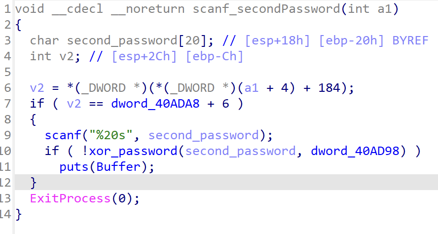 입력한 비밀번호와 위에서 말한 모듈로 복호화된 문자열을 xor_password 함수로 파싱