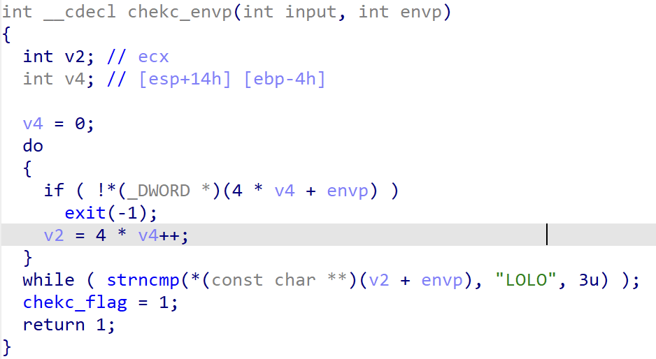 환경변수에서 "LOL"로 시작하는 환경변수가 있으면 check_flag 함수를 1로 선언.