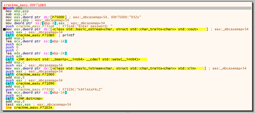 입력받은 password와 0xF7319c에 있는 문자열을 비교하여 동일하면 login