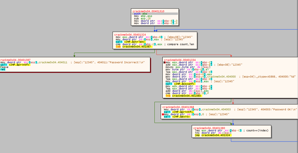 입력한 비밀번호와 username을 이용하여 비밀번호를 한 바이트씩 돌면서 0x004011AD의 과정 거침