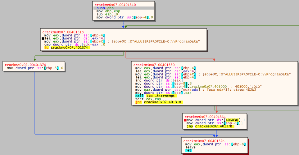 [ebp+0xC]에 있는 주소를 가져와 4만큼 더하면서 문자열들을 모두 반복