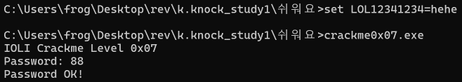 -> 환경변수를 설정하기 위해 cmd에서 set LOL=hehe 를 이용해 환경변수 설정