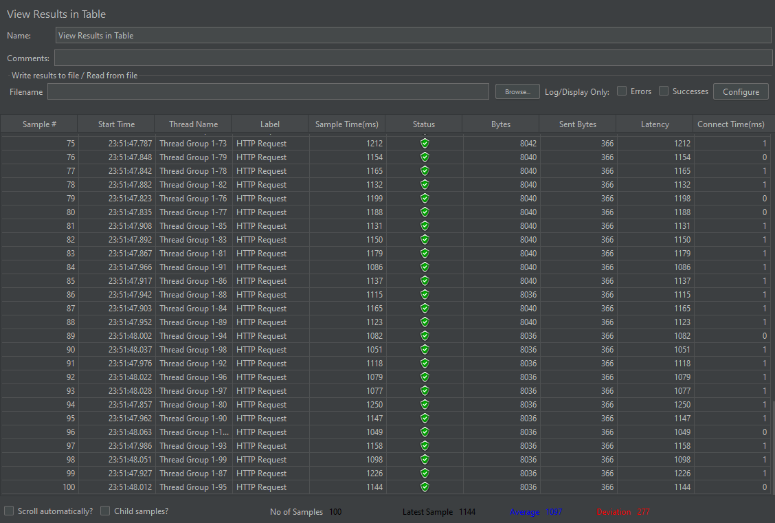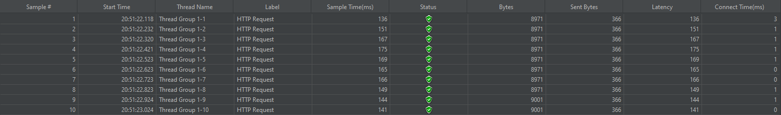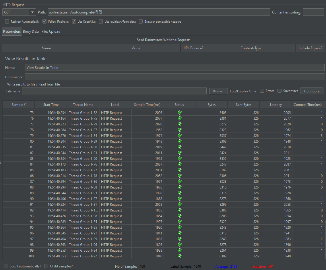 테스트는 Apache Jmeter 도구를 이용해 스레드 10개, 100개를 동시 요청하여 응답 평균 시간을 비교했다.