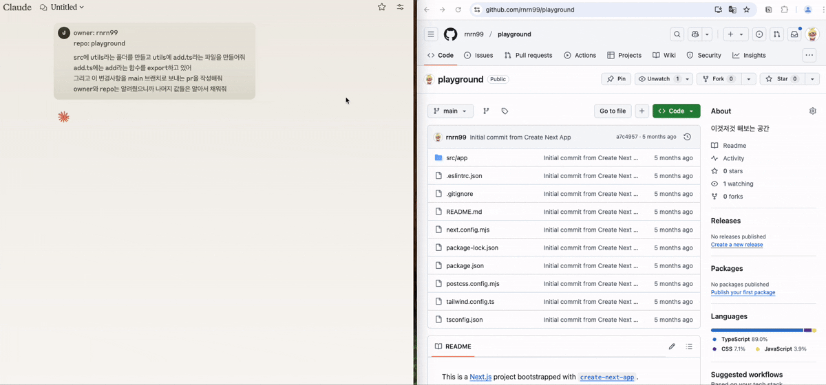 세팅이 완료된 후, Claude에게 다음과 같이 요청했습니다.