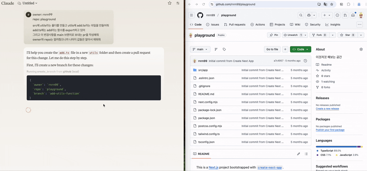 지금은 Github MCP 서버만 연결한 예시이지만 다른 MCP 서버를 추가한다면 다음과 같은 시나리오도 가능합니다.