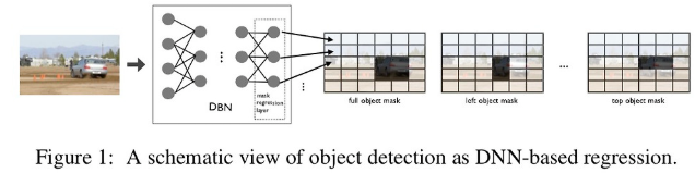 One-stage method들의 초창기 방법인 만큼 매우 간단합니다. 아래 그림과 같이 이미지를 여러 coarse grid로 나눈 뒤, 회귀를 통해 객체의 존재 유무(마스킹 된 grid에서만 객체가 존재)를 탐지하는 것 입니다.