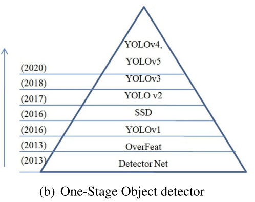 One-stage object detector들은 object localization과 object classification을 함께 학습 또는 수행합니다. 따라서 region proposal free framework라고도 불리며 대표적인 모델들은 다음 그림과 같습니다.