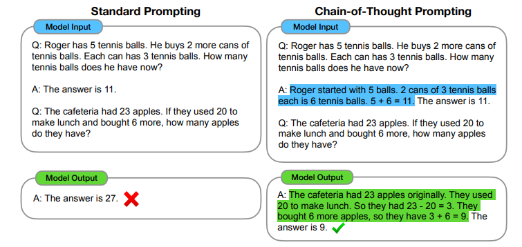 CoT (Chain of Thought) Prompting은 in-context learning과 마찬가지로 prompt 상의 내용을 활용하여 LLM의 성능을 높히는 방법을 의미합니다. 다만 In-context learning은 예시에 따른 label에 초점이 맞춰져 있다면 CoT prompting은 아래와 같이 추론 과정을 설명하는 것에 초점이 맞춰져 있습니다. 이경우 또한 saliency map을 활용하여 prompt 내용에 따른 각 토큰의 중요도를 판별해 보았을 때 CoT Prompting의 효용성을 입증했다고 합니다.