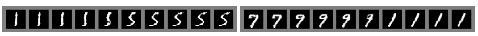아래 그림은 z space 상에서 linearly interpolating 작업을 통해 추출되고 generator로 생성된 sample들을 나타냅니다.