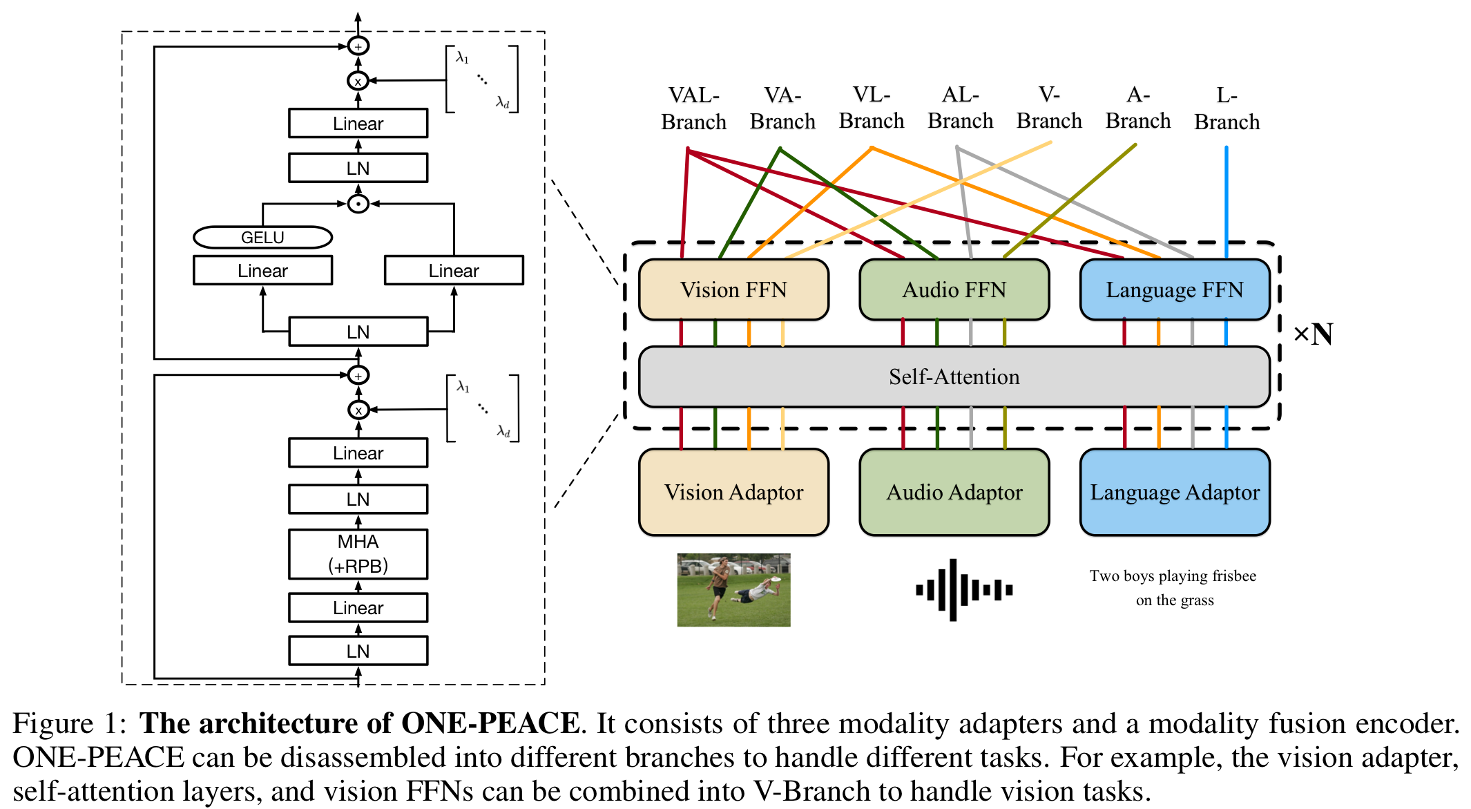 오늘은 ONE-PEACE를 리뷰해보려 합니다. 최근에 개인적으로 진행하는 프로젝트 때문에 semantic segmentation task를 진행하게 되었는데 해당 모델이 리더보드 상위권에 있더라고요. 근데 multi-modal model이더라고요 ... 한번도 경험해본적이 없는 분야라 논문 리뷰를 해보려고 합니다.
