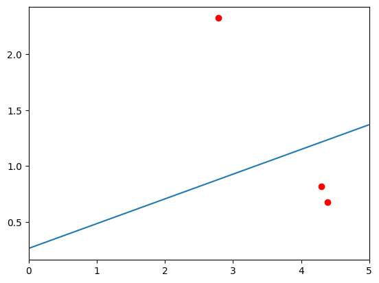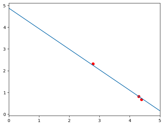 해당 코드로 실험하였을 때 다음 사진이 처음에 랜덤으로 선택된 선형모델입니다.