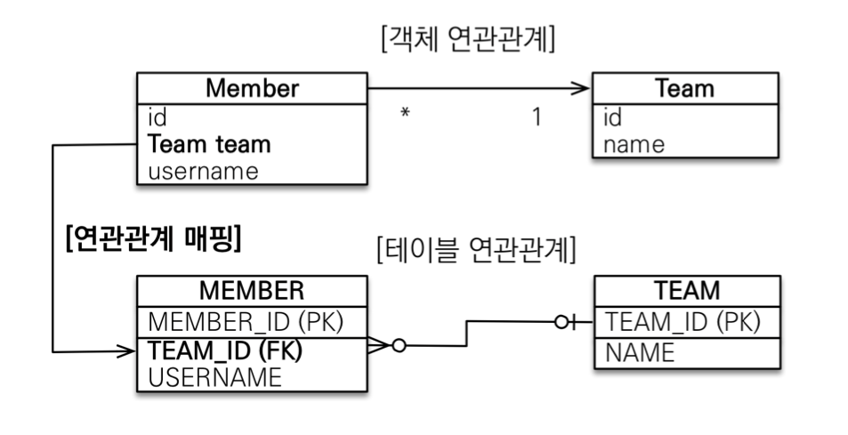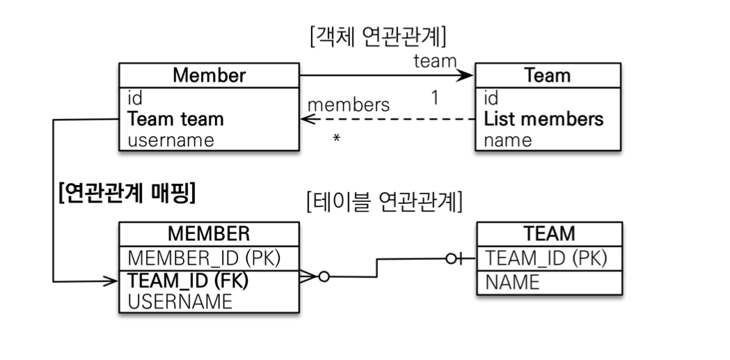 - 테이블은 외래키 하나로 두 테이블의 연관관계 맺음
