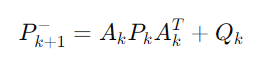 여기서 Xk+1 은 예측된 상태, Pk+1은 예측된 공분산, Ak는 상태 전이 행렬의 미분, Qk는 프로세스 노이즈의 공분산 행렬이다.