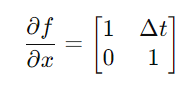 위의 시스템 및 측정 모델은 비선형이므로, EKF를 적용하기 위해선 이를 선형화해야 한다. 이를 위해, 시스템 및 측정 모델을 다음과 같이 미분하여야 한다.