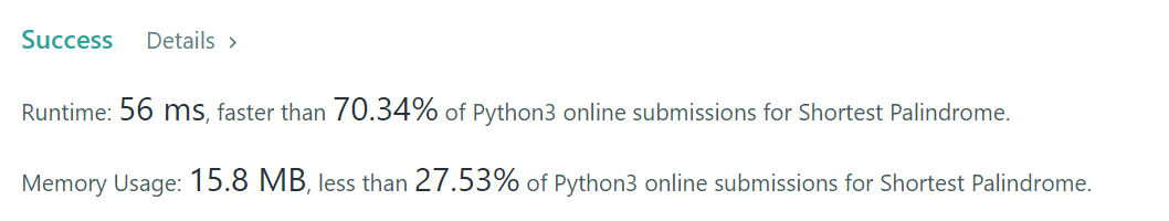 return s[i:n][::-1] + self.shortestPalindrome(s[:i]) + s[i:]